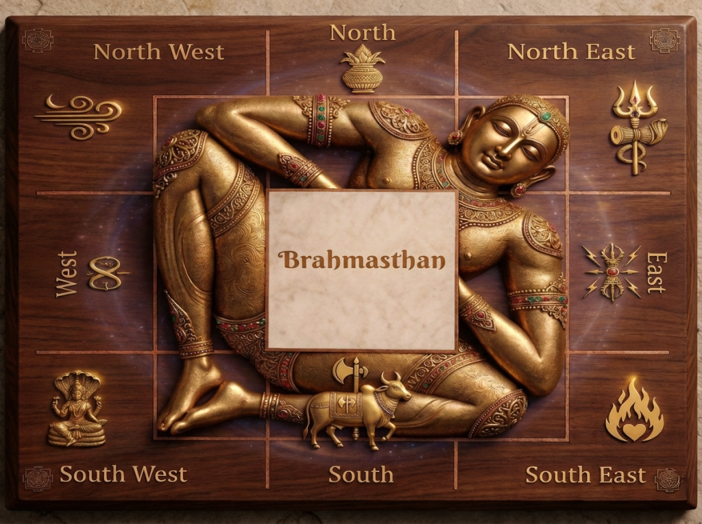 His head rests in the northeast, feet in the southwest, and his body spans the entire space β€” guiding energy flow. When aligned with him, spaces feel balanced; when not, imbalance can arise.